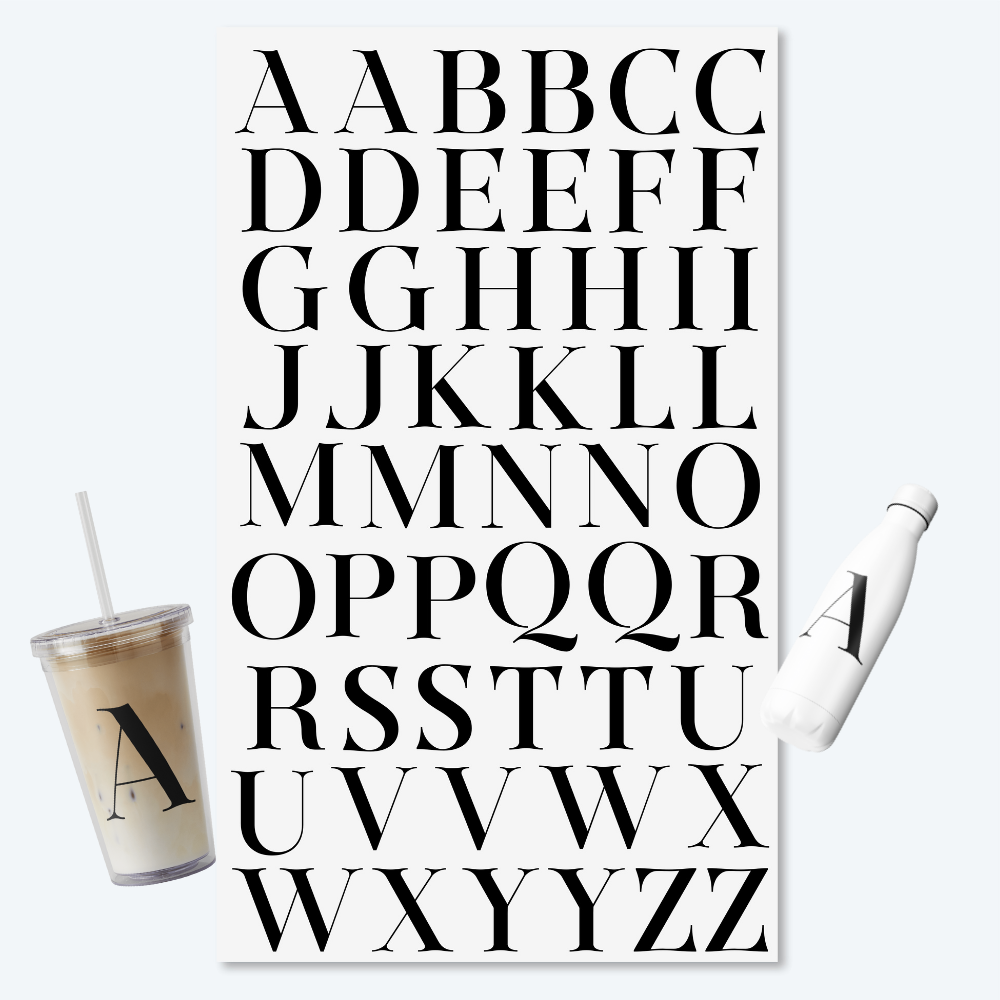 Cartela DTF UV 30X50- Tema: ALFABETO - Adesivo para produtos rígidos