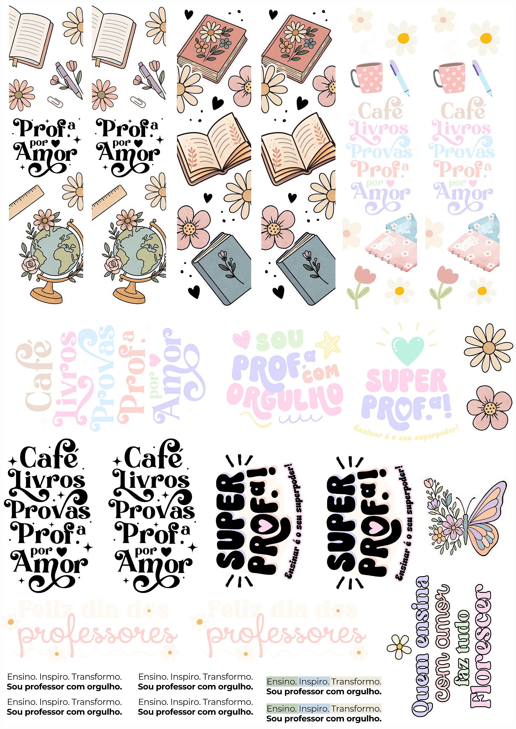 Cartela DTF UV A4 - Tema: DIA DOS PROFESSORES 4 - Adesivo para produtos rígidos