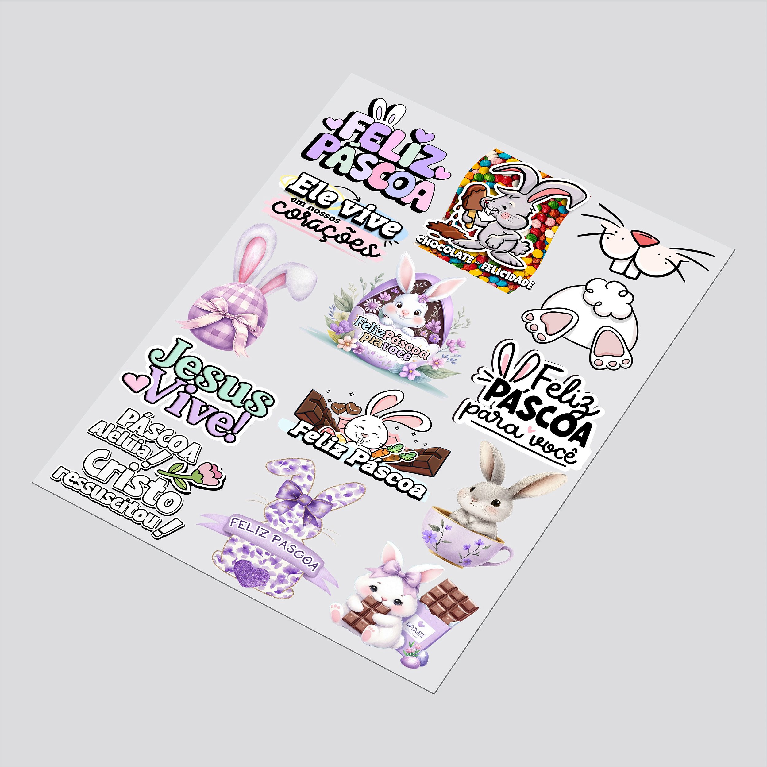 O adesivo DTF UV proporciona um visual premium e acabamento profissional. Além disso, o tema PASCOA te ajuda a agregar ainda mais em seu portifolio quando o tema são kits de convites.